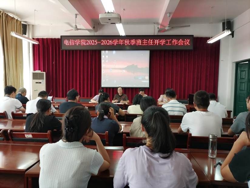 在理工楼B202会议室召开2025 - 2026学年新学期班主任工作会议,部署新学期学生工作、强化班主任队伍建设。学院党总支书记张丹、副书记江艳、学工办主任周欣、辅导员杨然钧及全体2024级、2025级班主任参会。