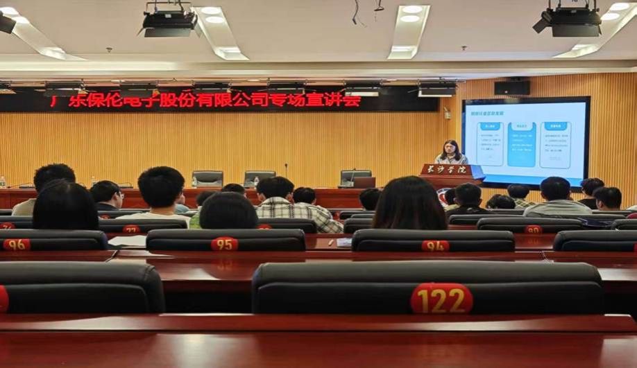 会议尾声,广东保伦电子校招负责人王晓婷的企业宣讲将现场气氛推向高潮。她结合企业招聘需求,详解研发储干、销售工程师岗位的能力要求与成长路径,透露“技术岗起薪普遍在8000-15000元,优秀应届生可享专项培养计划”,并现场进行招聘宣讲,邀请毕业生参加后续专场面试。