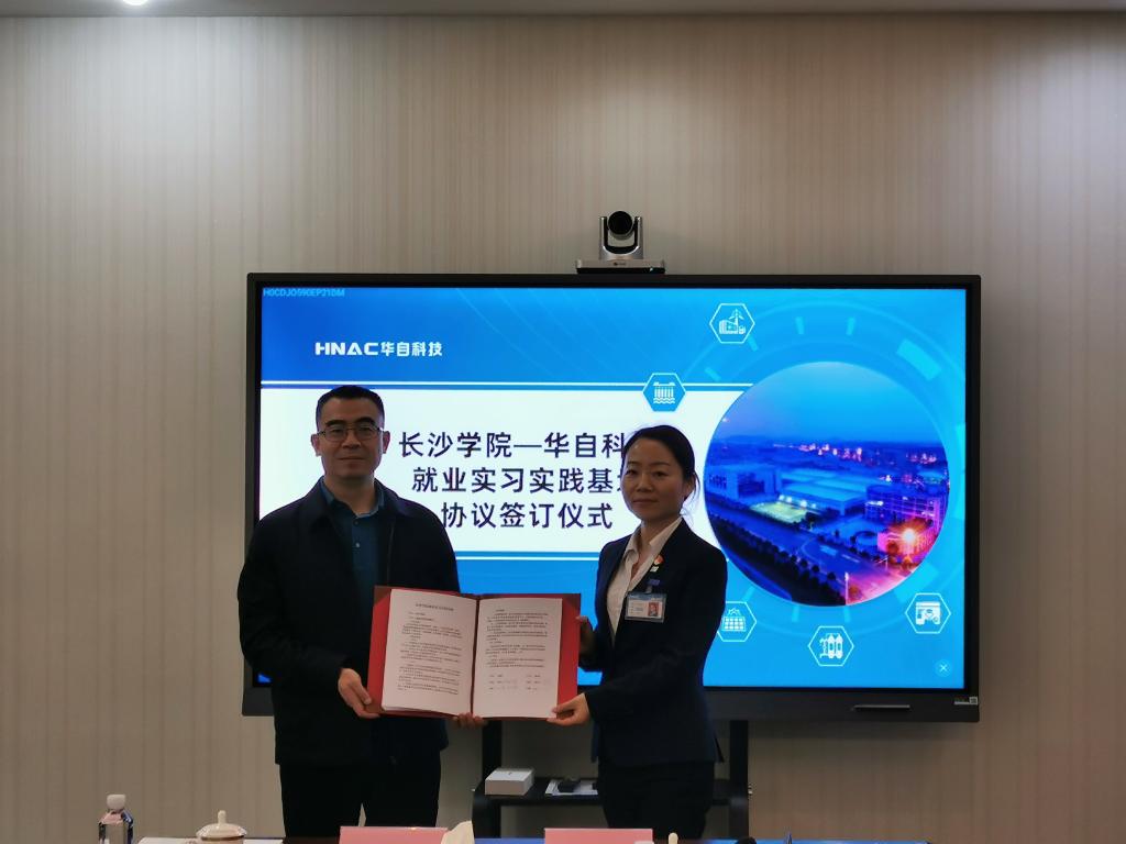党总支书记张海涛代表学院就下一步深化合作交换了意见;校党委委员何利华详细介绍了学校基本情况,并表示,近年来学校正在努力建设“双一流”高水平应用特色学院,积极对接地方产业链创新链,期盼与华自科技开展多维合作。期间,党委委员何利华代表学校与华自科技签订了就业实习实践基地协议。座谈会后,在董事长助理兼人力资源总监李亮带领下,校党委委员何利华一行深入走访了华自科技发展历史馆。
