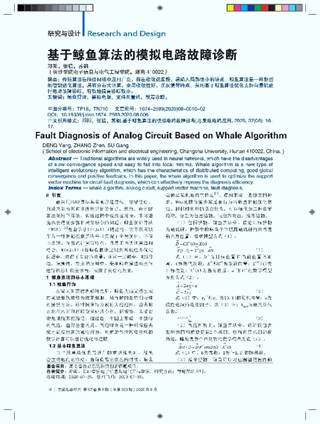 为唯一完成单位在国家级学术期刊《装备维修技术》和《集成电路应用》上分别发表题为“基于改进蝙蝠算法优化支持向量机的模拟电路诊断研究”和“基于鲸鱼算法的模拟电路故障诊断”的学术论文。两名同学通过改进经典的人工智能算法,提高了模拟电路诊断的分析效率。两篇期刊论文的核心内容均来自本科毕业设计,论文全文将进入知网、万方、维普等数据库。