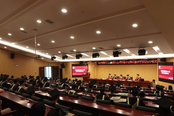 在观看云祝福视频中,毕业典礼拉开了帷幕。首先院党总支书记张海涛宣读了学校学位委员会的决议。紧接着副院长刘辉总结了2020届毕业生四年来在德智体美劳全面发展方面取得的成绩。教师代表熊跃军表达了全体老师对同学们的殷切期望,希望同学们提升自己,为社会做出应有的贡献。毕业生代表2016级通信工程专业的莫昌月发言,他总结了自己四年来的所学所感,深切地表达对学院和老师们的感激之情和对同学们的不舍之情,表示将无愧于老师们的辛勤培养,创造同学们属于自己的理想蓝图。