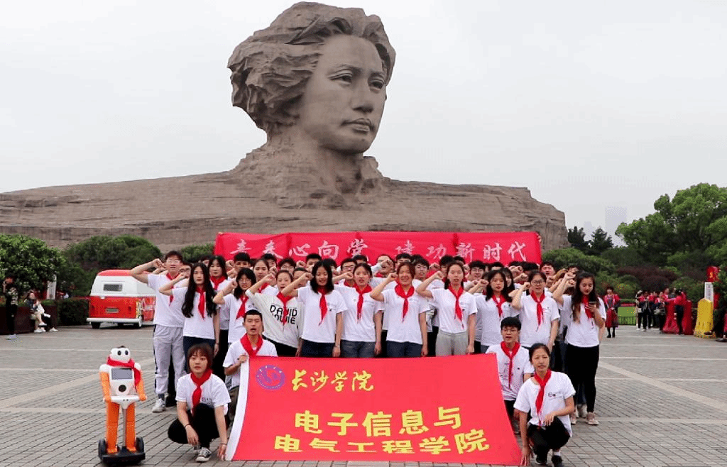 82名团员青年们,在长沙红色教育基地——橘子洲头,开展了一场“青春心向党,建功新时代”的特别主题团日活动,庆祝中华人民共和国成立70周年,纪念五四运动 100 周年。学院团总支书记黄佳佳全程参与并寄语团员青年。